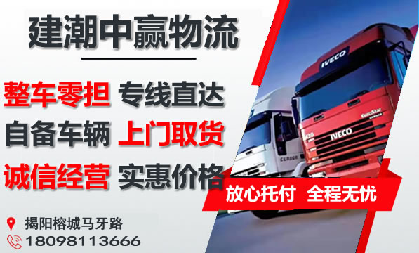 3、揭阳到韶关物流专线价格优惠、运货及时,欢迎来人来电咨询揭阳到韶关的物流价格、运费和报价等相关问题,建潮中赢物流将全力为您提供合理的运输方案。